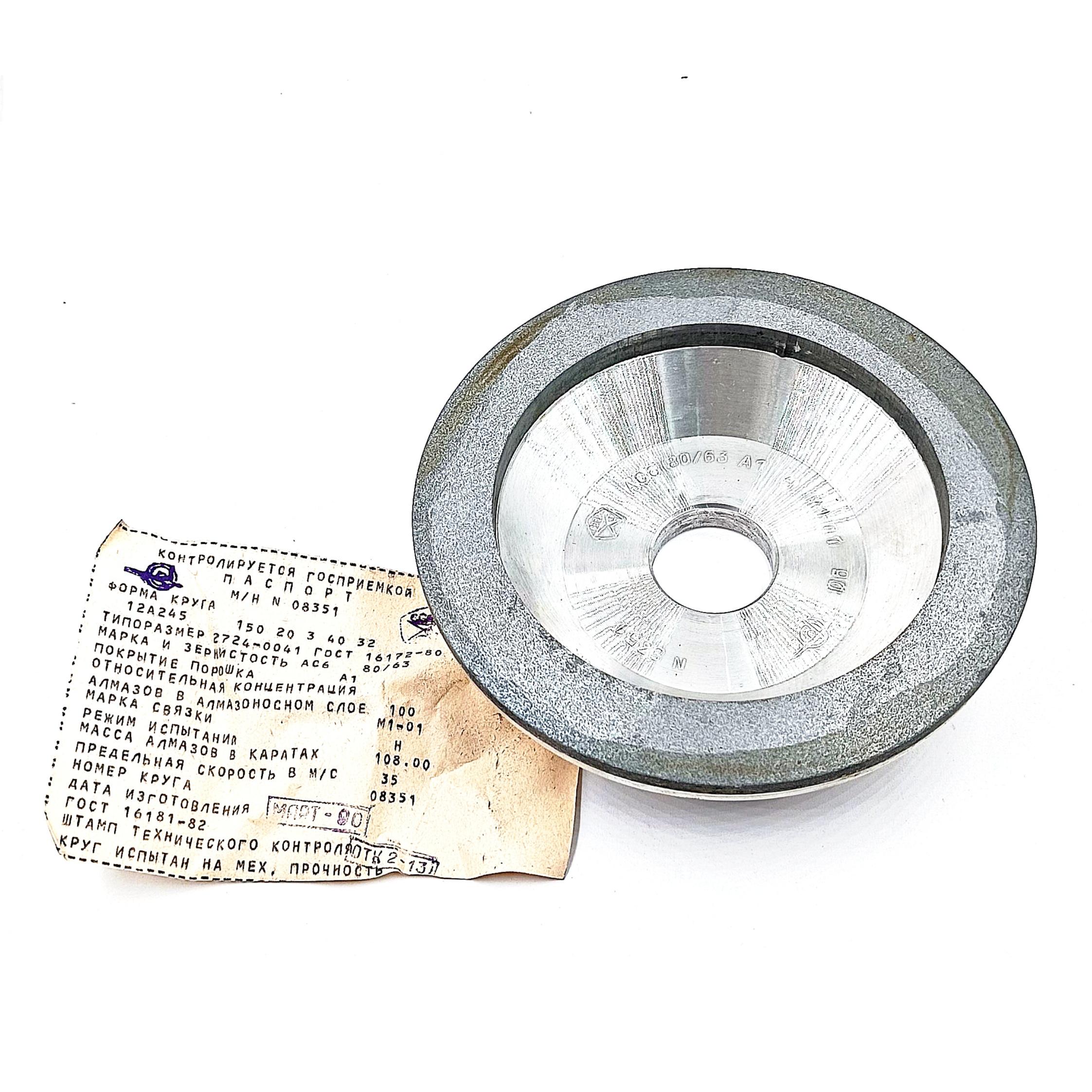 Круг алмазный чашечный 150 АС6 45° 80/63-А1-4-М1-01 (12А2-45) чашка алмазная (20мм)