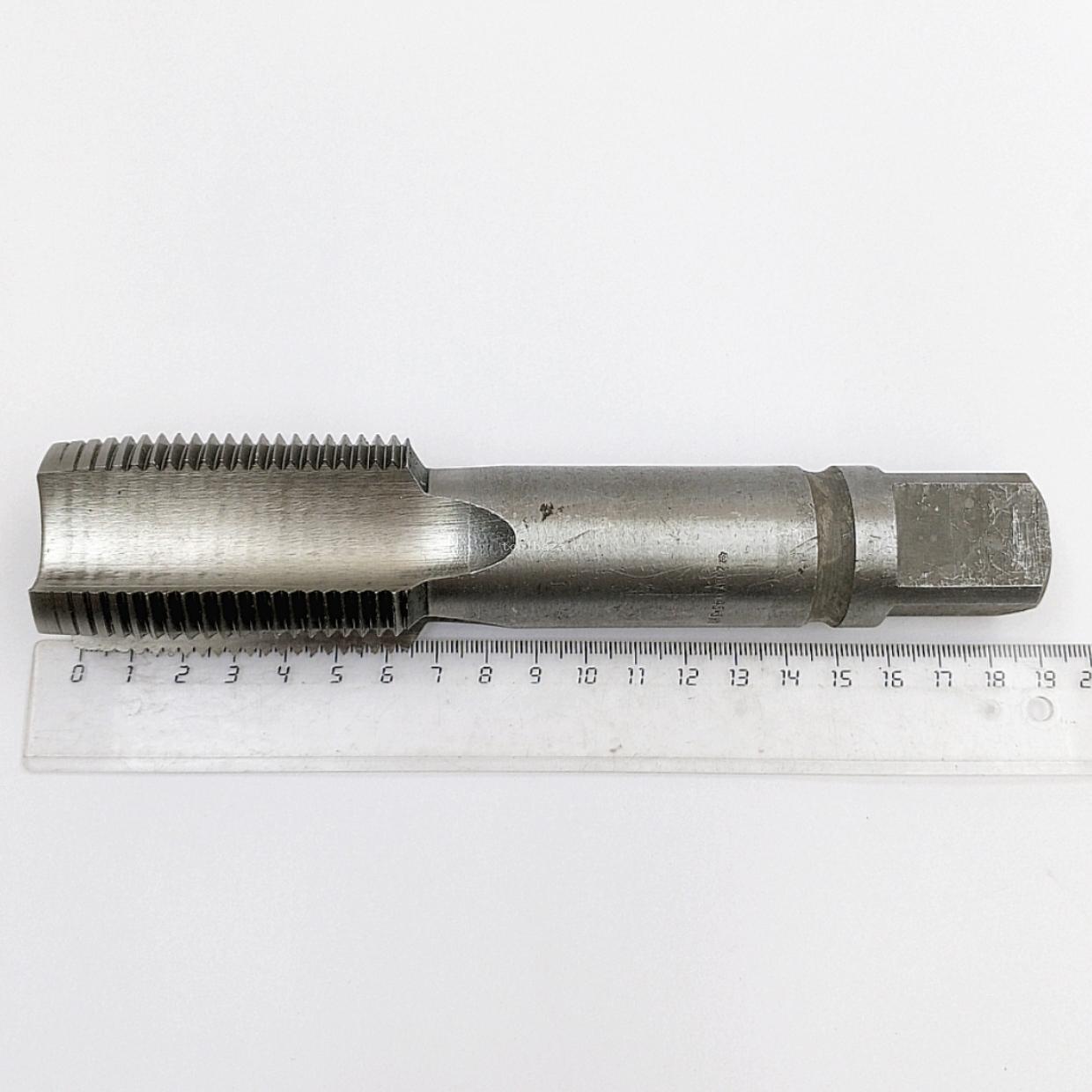 Описание товара: Диаметр отверстия под резьбу-41,9мм; L-185мм, l-67мм, d-31,4мм, S-24,8мм. тип отверстия-сквозное; вид шага-мелкий-2; канавка-прямая; сплав- Р6М5; класс точности- Н1; без покрытия.