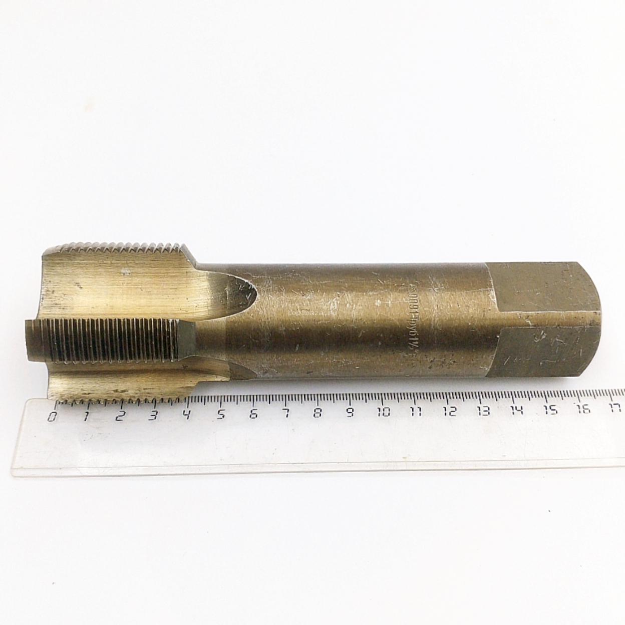 Описание товара: Диаметр отверстия под резьбу-44,9мм; Номинальный диаметр резьбы- 1 1/2"(47,805мм); Шаг резьбы- 11ниток/дюйм (2,309мм) L-160мм, l-40мм, d-35,5мм, S-28мм. тип отверстия-глухое; канавка-прямая; сплав- Р6М5; Класс точности- В1; Покрытие - не распознано.
