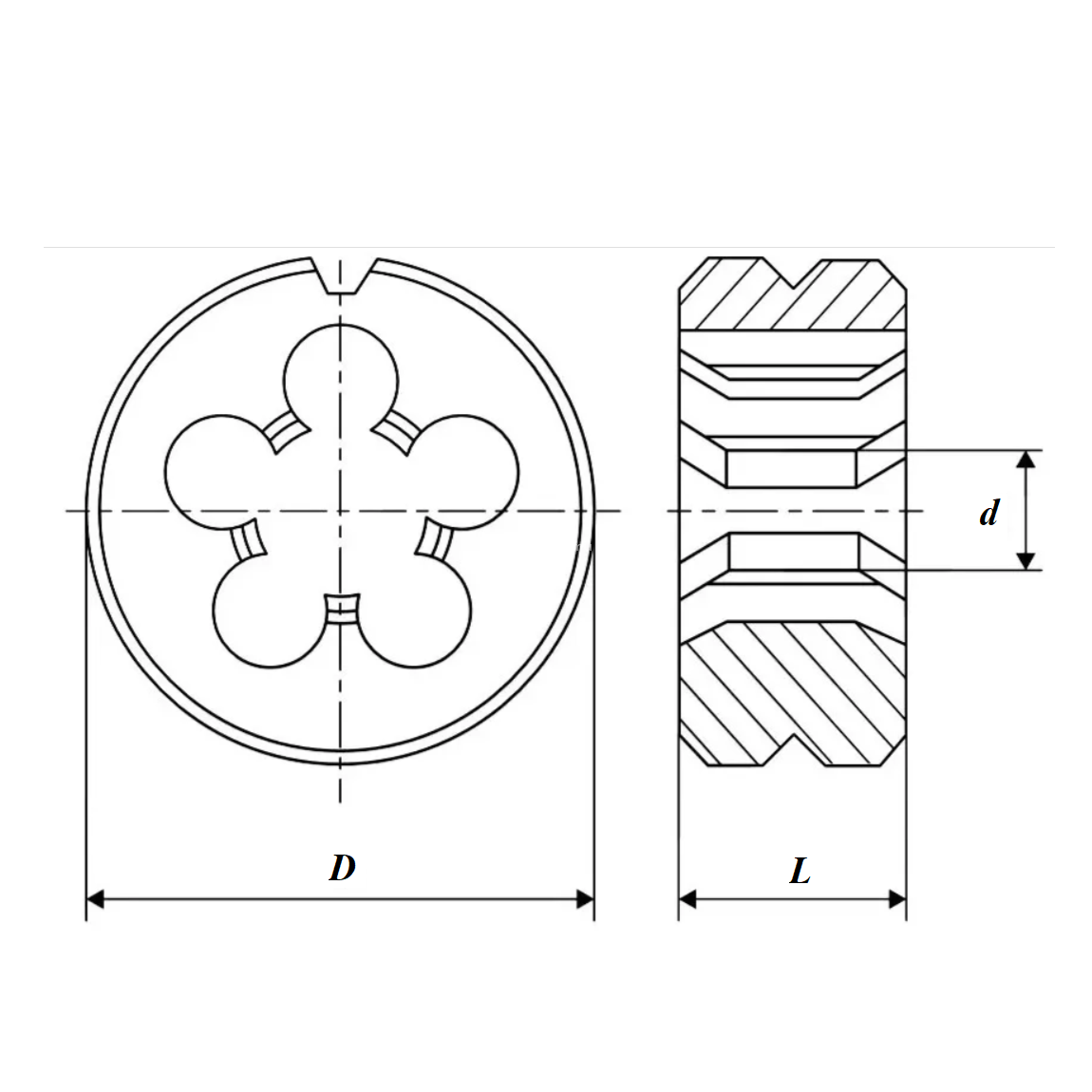 Плашка цилиндрическая дюймовая 1/2" -20ниток UNF 60° 9ХС (D-38мм; L-14мм)