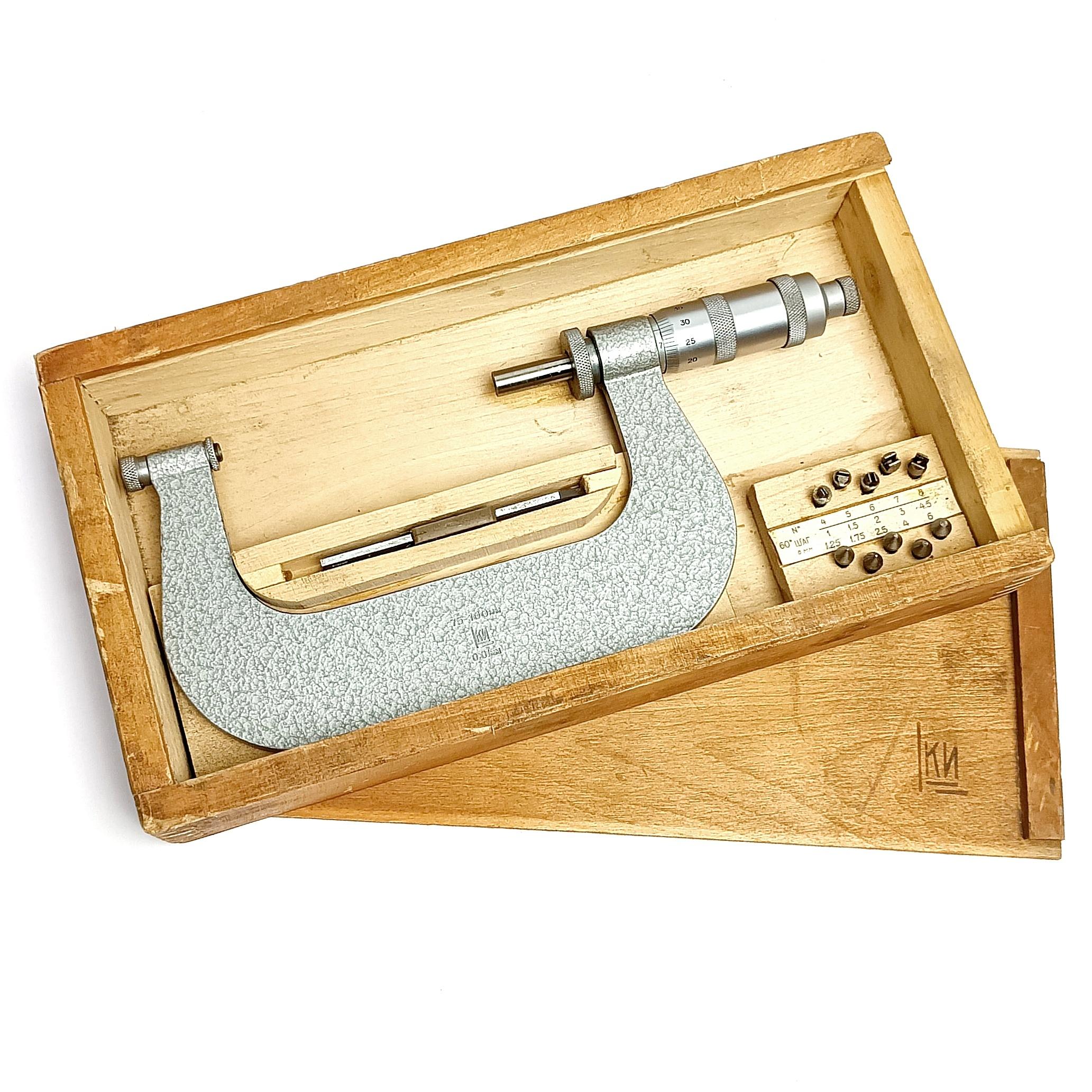 100 Микрометр Резьбовой МВМ-100 75-100мм (0,01) (60° 1-1,5:1,75-2,5:3-4,5:5-6)