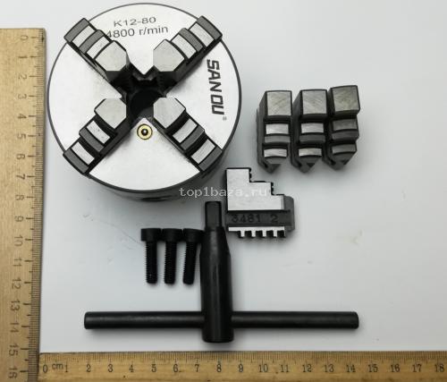 Патрон токарный 4 - х кулачковый самоцентрирующий с посадкой на планшайбу d80 , K12 - 80, с d посадочного пояска 55 мм